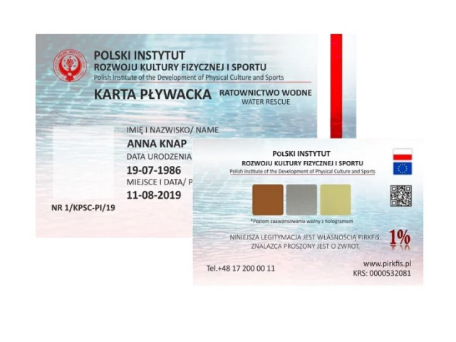Karta pływacka jest przydatna podczas obsługi w wypożyczalniach sprzętu wodno-rekreacyjnego (rowerki wodne, kajaki, skutery itp.).